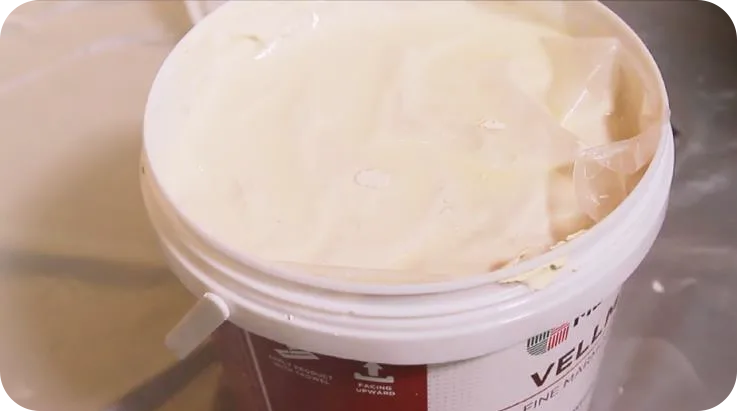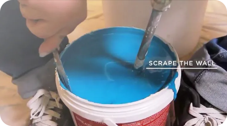 Scrape off clumped plaster from the side of plaster can.