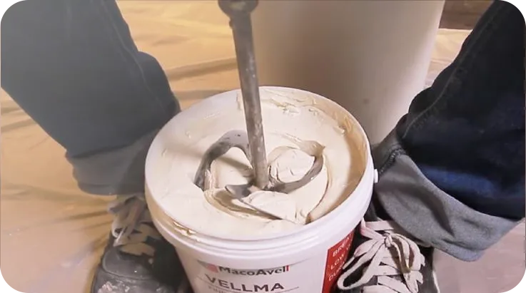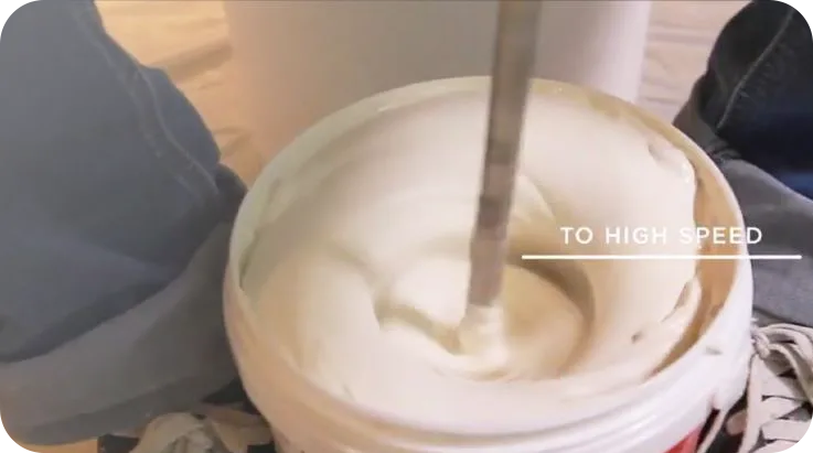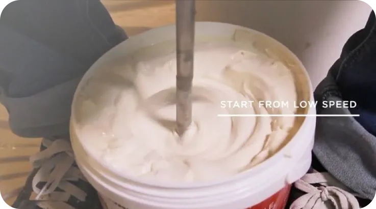 ⚠️ Starting at high-speed will cause splashing due to the plaster’s thick muddy texture.